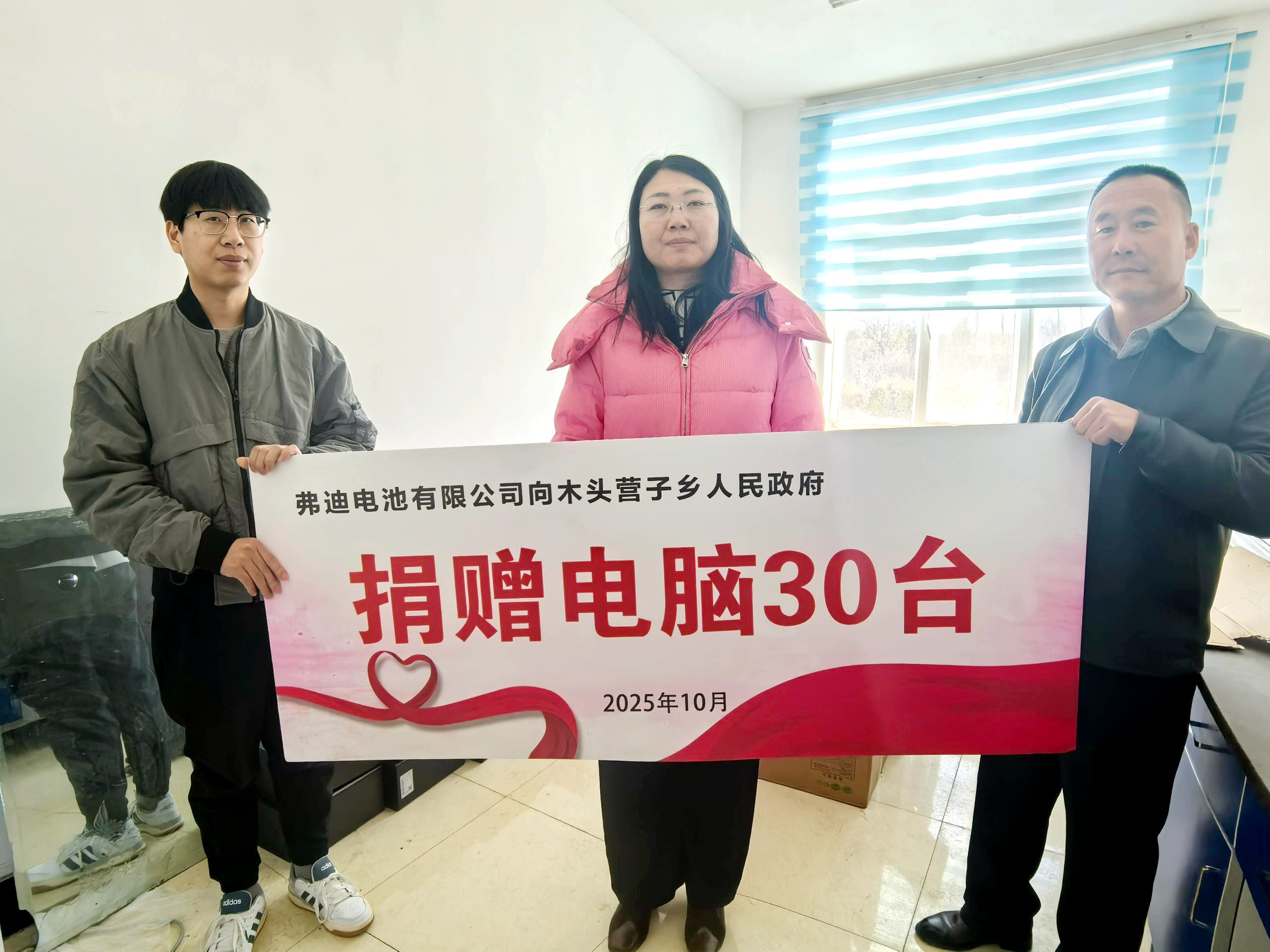 2025年11月,弗迪电池有限公司向内蒙古自治区赤峰市敖汉旗木头营子乡政府无偿捐赠了30台电脑设备,用于改善该乡政府的办公条件,以科技力量赋能基层治理现代化,助力乡村振兴战略的深入实施。
